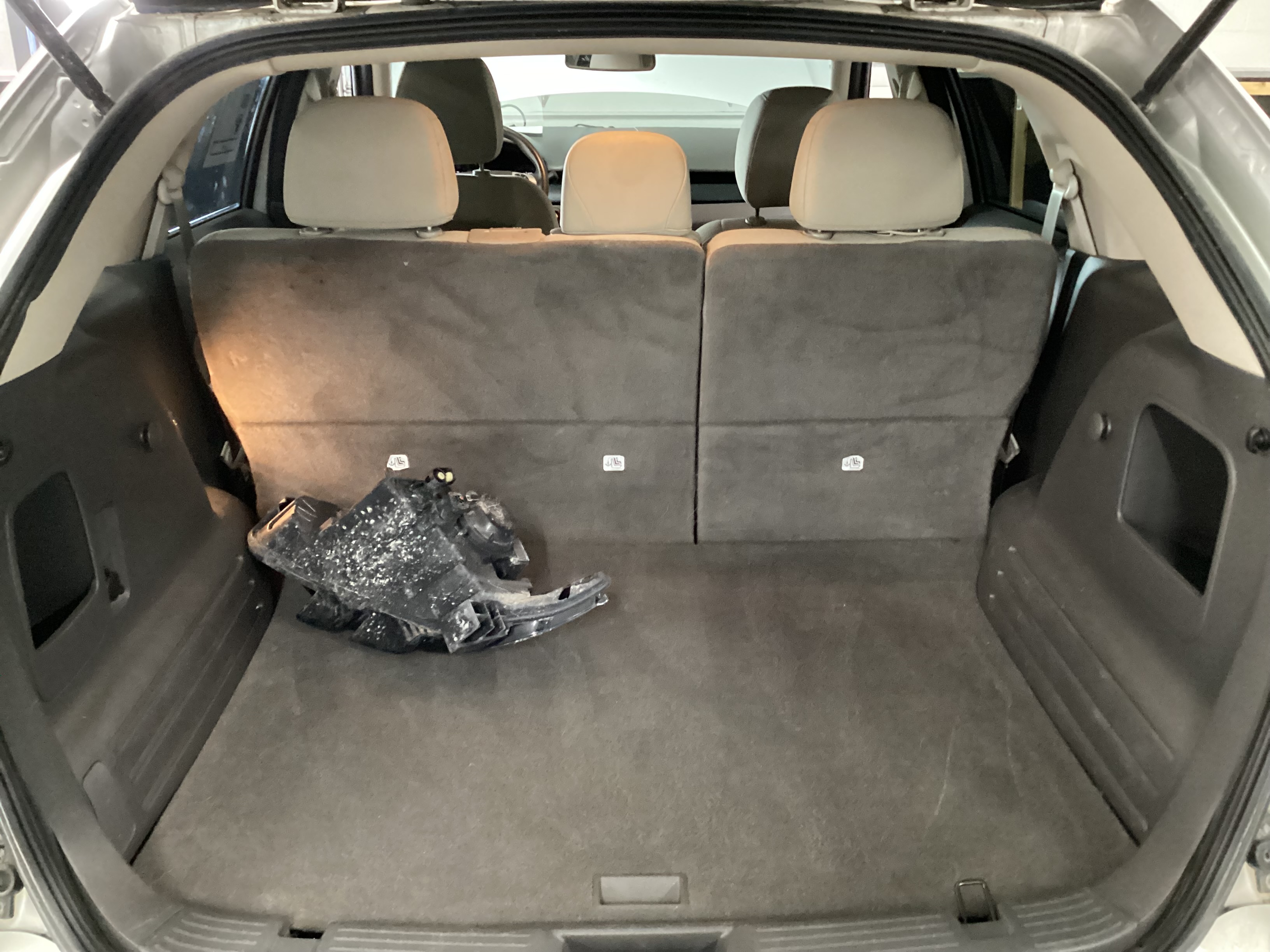 child safety door locks • power door locks • vehicle anti-theft • abs brakes • electronic brake assistance • traction control • vehicle stability control system • driver airbag • front side airbag • passenger airbag • side head curtain airbag • keyless entry • air conditioning • cruise control • tachometer • tilt steering • tilt steering column • steering wheel mounted controls • telescopic steering column • tire pressure monitor • trip computer • am/fm radio • cd player • second row folding seat • cargo area tiedowns • front air dam • rear spoiler • alloy wheels • full size spare tire • power windows • power adjustable exterior mirror • deep tinted glass • interval wipers • rear window defogger • rear wiper